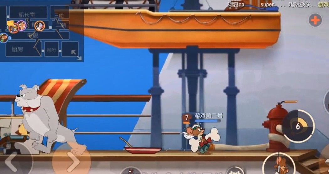 牛仔在这个版本还是非常强势的,五彩神牛野蛮冲撞可不是吃素的,一定要小心,打了一半队友又被抓到了,开始的时候这天使还说要挂机来着,全程没看着要挂机的样子呀,而且我们也推进去三个奶酪了,没一会马上就要推完了,但是事情总是不会那么顺利,牛仔在守最后一个奶酪,那我先拿个狗骨头,用小狗掩护就很容易推进去了,这小狗也非常给力,给我们拖延了大量时间,终于推进去了。