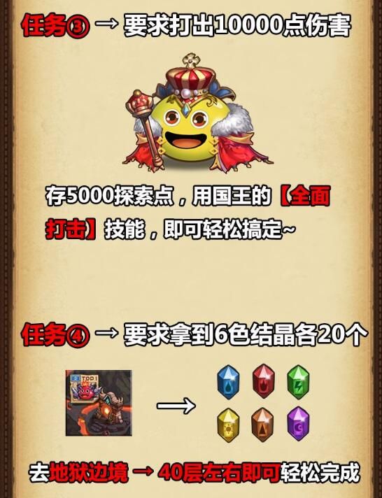 任务③→→要求打出1万点伤害,这个老玩家用国王的全面打击,就可以轻松搞定了。