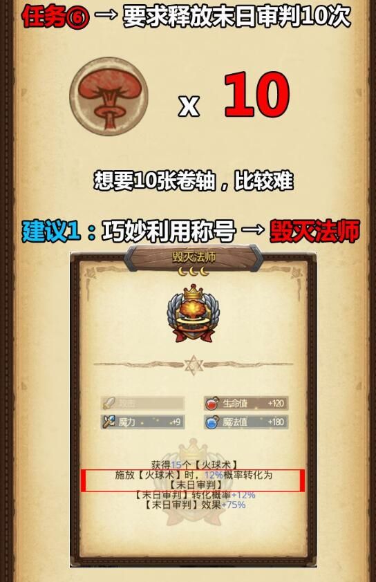 这个任务我们如果是去存卷轴的话,就比较难,但要是利用称号——毁灭法师