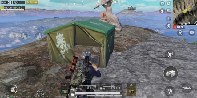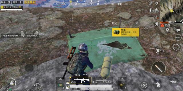 开局先跳到下面的房区,捡到了一把M416,正好可以为大家评测一下,这个帐篷可以抵挡多少发M4子弹。