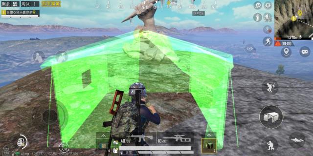 放好之后,你就能躲进这个帐篷里,这个帐篷是可以抵挡子弹的,使用最常用的M416进行了测试。