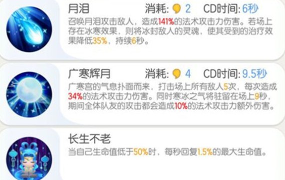 月泪技能原本在有冰寒时能够打出冰封的控制效果,但是在现版本只能够起到降低治疗的微弱作用。而改动影响最大的就是长生不老技能,原本嫦娥即便在场下也能够为队友施加治疗,但现在只能针对自己且奶量也降低,直接从可以外带的万能辅助削成了需要自食其力的赖场输出。