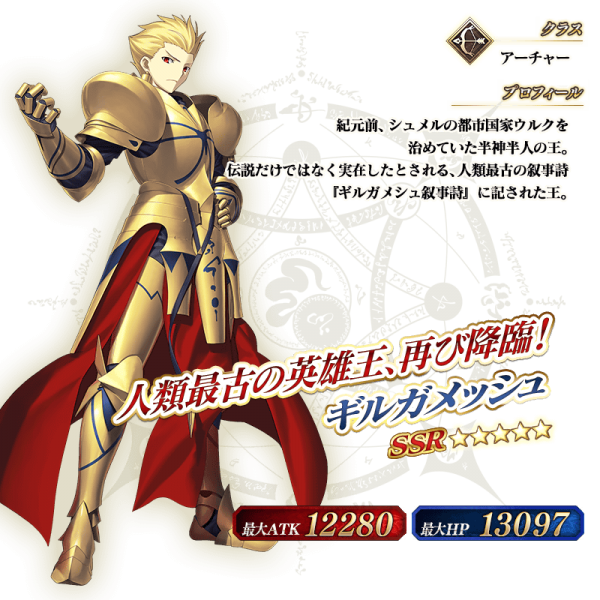 SSR吉尔伽美什(Archer)战斗动作更新随着本次活动的开放,SSR吉尔伽美什(Archer)的战斗动作进行了更新。