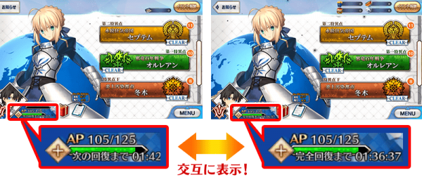 AP完全回复指示更新现在,AP完全回复时间将会与回复下一点AP的时间交替显示。