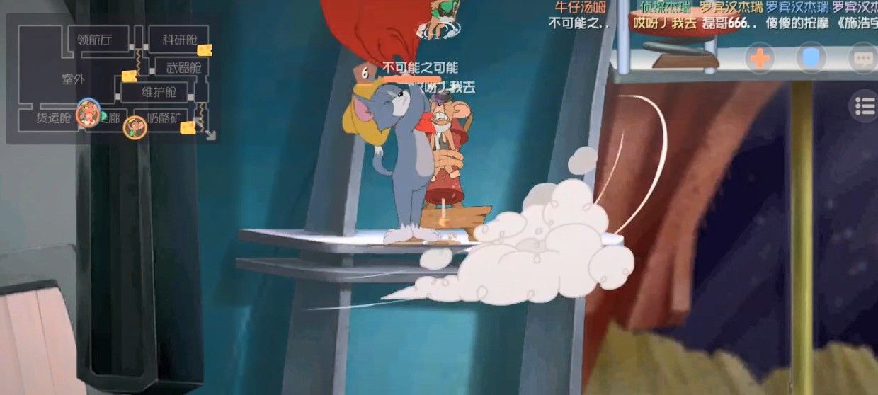 猫和老鼠最近老是碰到太空堡垒,贼蛋疼,一点儿也不好玩,还扣血,最可恨的就是刷奶酪的地方,看着那么多还不能扛着爬楼梯,如果想拿走,还要绕那么远,个人感觉就是坑老鼠的地图,看着一大堆,还不好用,这把就是这样,不过队友很有默契的选了罗宾汉,个人还是想试试小侦探,毕竟侦探更新后也加强了些,最主要的是隐身的话,还能回血,在后期太空堡垒,简直随便飞了。