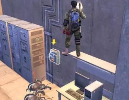 进入实验室后,吸引全部的甲虫集合到着火点,跳进着火点内的非燃烧处,等到甲虫翻身后击杀,再去修复电闸即可。