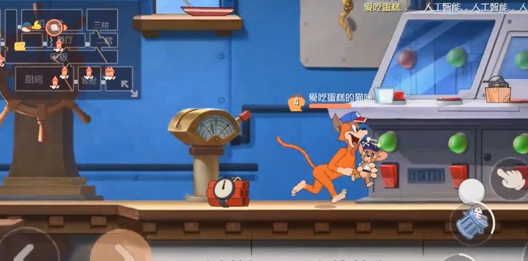 首先呢,我们需要选一只橘猫,然后开局先抓一只老鼠,来到船长室这里,再走到彩蛋房旁边,使用闪现技能,再然后我们,就进入彩蛋房间了,这个时候,我们需要耐心等待老鼠挣脱,老鼠挣脱之后,来到彩蛋房旁边,使用闪现技能,我们竟然直接出来了,没错,这个就是橘猫,闪现技能的变态之处了。