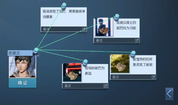 在附近调查会发现这里的泥土是新泥,所以是有用的线索,在线索墙中进行连线以提供流浪汉无罪的证据。