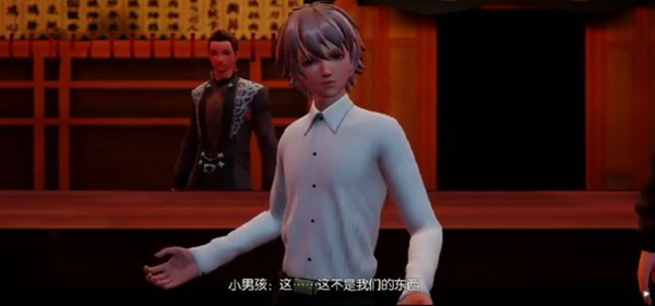 过剧情,然后发现旁边的客人引发了骚乱,进行处理,在结束了小男孩的故事之后可以向其他客人打探消息。