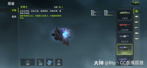 龙骑士对比天空之子来说有足够的稳定性,弹道稳定,性能优秀,伤害到位,容易压枪,射速和距离都是步枪中相对优秀的,天空之子的射速还是远远比不上我们的龙骑士的(萌新推荐的)没装弹夹是30发子弹,装上弹夹之后是40发子弹足够用了!加上核心还可以大大降低后坐力,增快换弹速度!