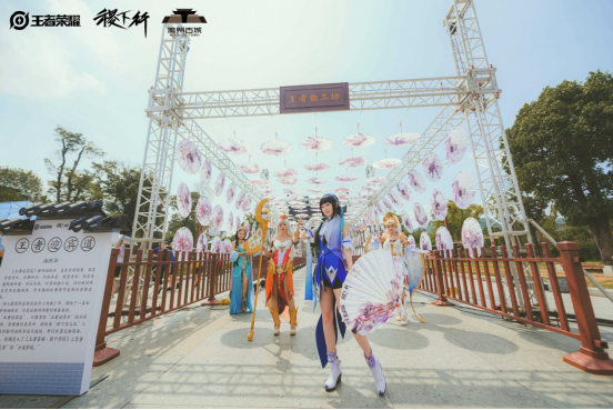 徽州古城文创季向参观者展现徽文化的整体美、自然美、朴素美的同时,营造出王者荣耀“稷下学院”沉浸式东方幻想学院氛围,为游客带来与心仪的人物角色同游徽州古城的独特体验。