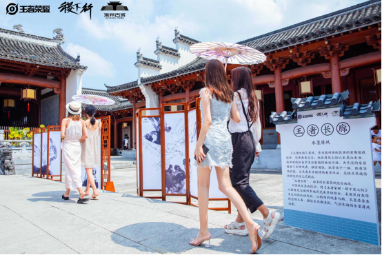最近,《王者荣耀》还以“稷下行,不惧浪”为主题,发起了“不要宅,出来浪!”的线下主题活动,与“徽州古城”进行合作,为大家打造一条独特的夏日风景线。8月24日,由王者荣耀与黄山市歙县人民政府联合发起的“徽州古城文创季——王者荣耀稷下行x徽文化”经过了两个多月的筹备,在徽州古城府衙广场盛大开幕。