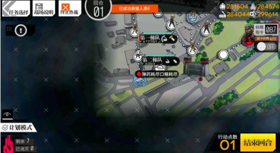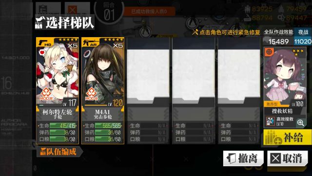 战斗中416技能会和M4重叠,最后的怪物我担心输出不够所以阵容上方空着防止被咬,救援人形然后空降到指挥部右边机场,和狗粮交换完成回收。