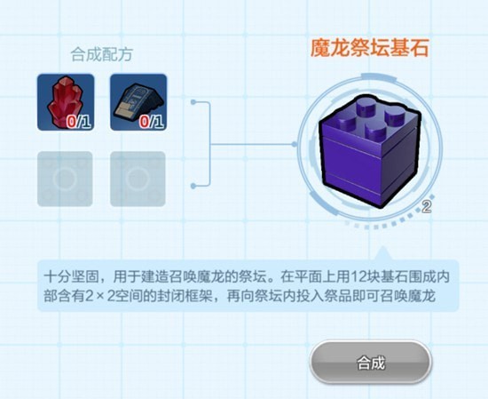 想要召唤魔龙首先需要制作召唤祭坛,祭坛需要使用12块魔龙祭 坛基石和祭坛魔石作为祭品。