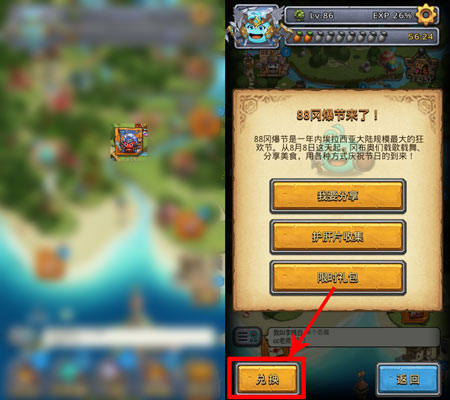 养生丸:点击地图“冒险者之森”右侧的88冈爆节活动,在打开界面中选择左下角的“兑换”