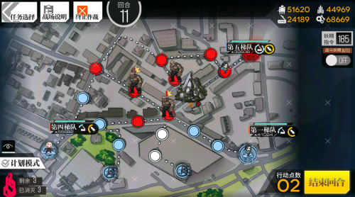 第一回合:左侧AR队前进2格,右侧AR队前进1格,左侧下斩杀队前进1格