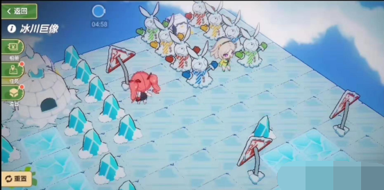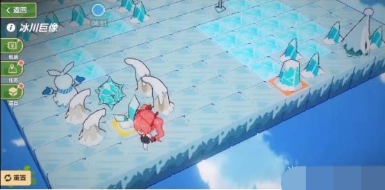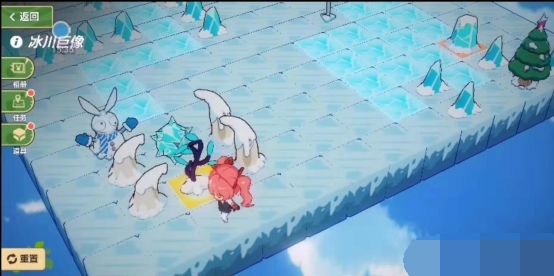 进入迷宫,首先跟地图左上角的雪屋对话(注意雪屋所占四个方格要点左下角的一个才有效),雪屋里的小姐姐说感觉冷,想要取暖。领取任务后,来到左下角的蓝色围巾雪人那里对话,打开通往地图右侧的通道。