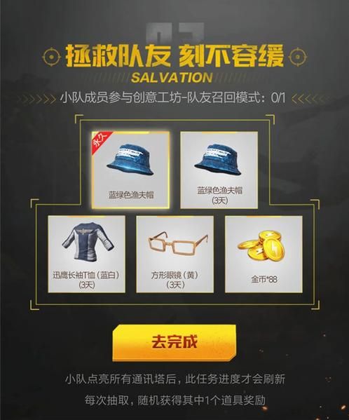 而当有队伍成员参与创意工坊—队友召回模式,其他队伍成员均可再次获得一次抽奖,并随机获得下图中的1个道具奖励。