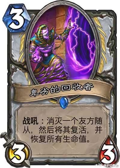 回收者可以配合克隆大师和渗透者。同时能优化冥神的复活池。前面说过苦修除了解场和做任务以外,也可以用来触发克隆大师效果。推荐喜欢中速套牌的玩家尝试。