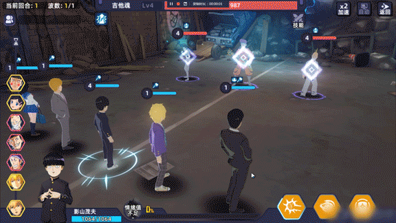 小编尝试用灵幻新隆、花泽辉气、高岭蕾、酒窝警卫开了一场低端局。看到动漫中自己喜欢的角色一起并肩战斗,这样的感受真的无与伦比。但是小编在这里提醒各位玩家老爷们,不要一味追求主角团的“集邮”,战斗时还要考虑一下阵容的合理搭配哦。