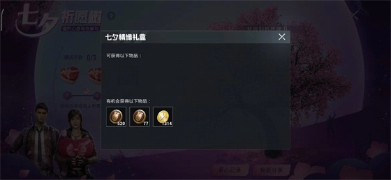 累计1天双人祈愿,还可以获得七夕情缘礼盒(有机会获得520服饰币、77服饰币、1314金币)