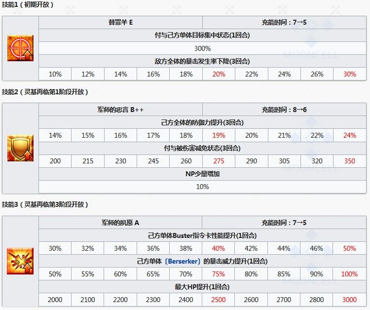 基础属性:HP6119 ATK5507 NP率0.4 1绿3蓝1红配卡