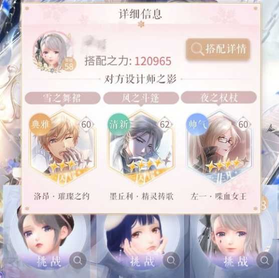 4、点击头像右下角的放大镜,可以知道挑战对方的搭配之力,通常选对手要选比自己低几千分的