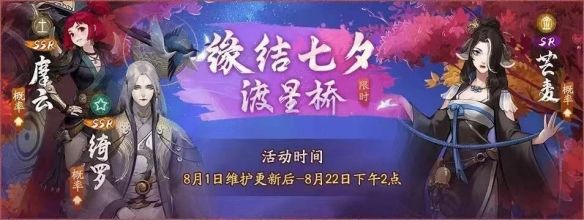 芒麦已于8月1日维护更新后加入『缘结七夕渡星桥』活动召唤池和『缘结七夕』仅妖灵卡池,并且概率UP!