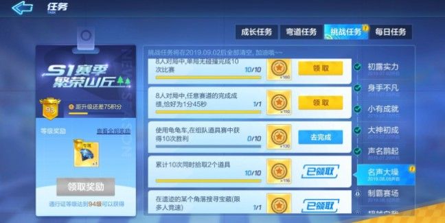 要想提升通行证的等级,主要依靠的是每日任务以及每周挑战,每日任务每天都会刷新,一旦过了就不能再做。每周挑战是会一直存在的,哪怕是之前周挑战也可以继续做,直到赛季结束。赛季的时间截止9月2日,大家要注意一下时间,如果结束了赛季积分就会清零,也拿不到黄金敞篷车了。