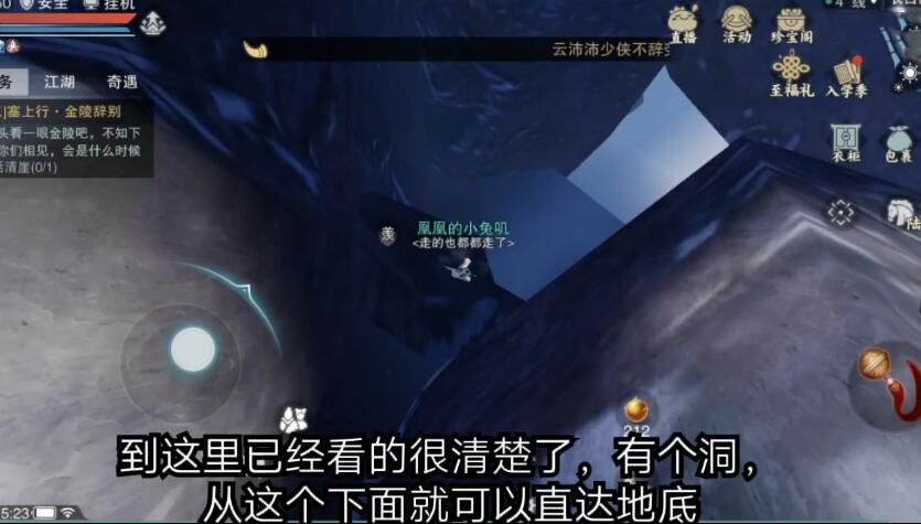 跳到下面之后我们可以看到一个洞口,这个洞口就是长白山底的入口啦,但是因为高度比较高,所以玩家在进入的时候一定要记得用轻功落地缓冲,否则可能直接死亡。
