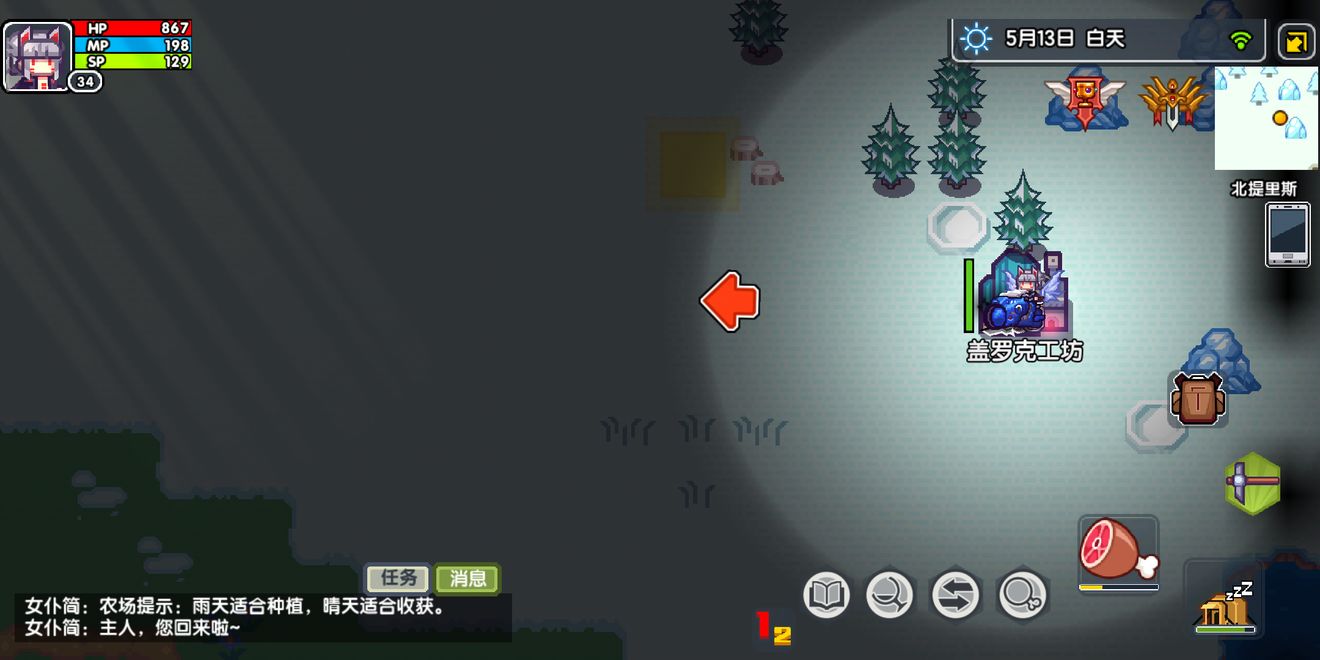 地图最右边雪地工坊里可以换东西,东西每天晚上24点刷新。