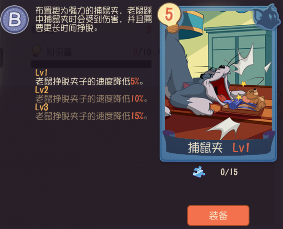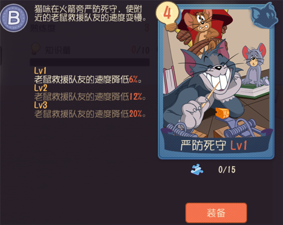 知识卡能够为你的角色提供强大的助力,是《猫和老鼠》手游中十分重要的必需品。如增加跳跃速度,提升推奶酪速度,普通攻击造成短暂眩晕等等,每张知识卡都有对应的知识量,使用知识卡将占用对应的知识量,而知识量取决于角色熟练度等级,角色所有知识卡占用知识量的总和,不能高于角色知识量上限。因此,在知识量一定的情况下,能否更合理地配置知识卡,用好每一点知识量,将对角色互动实力产生重大影响!