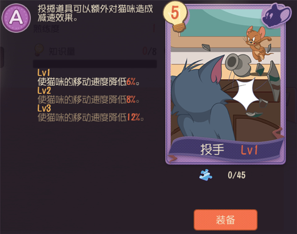 没有老鼠愿意直面猫咪,但为了把美味的奶酪搬回温馨的小窝,总要有老鼠承担起这样的重任,而身具“投手”潜质的勇者正是最佳鼠选!配备“投手”知识卡的老鼠在投掷道具砸中猫咪后,可额外产生不错的减速效果,增加对手抓捕的难度。