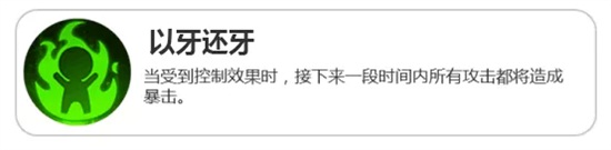作为这次活动的特定技能:以牙还牙,变异替换被动:势不可挡,以势不可挡不同效果,当收到控制效果时,接下来一段时间内所有攻击都将造成暴击,大大提高了斗木獬的输出能力,斗木獬被控制的几秒输出会低,但通过这个特技,可以将伤害暴击对方,让带有控制能力的敌人折损生命。