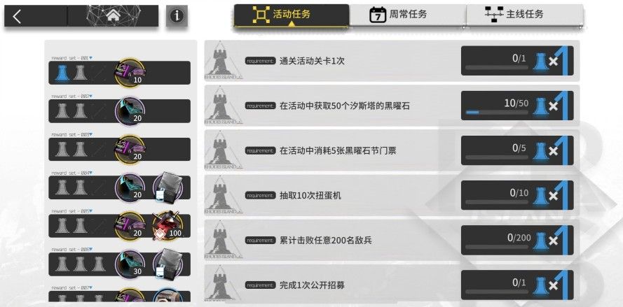 OF-6消耗20理智 收益:5门票+20黑曜石