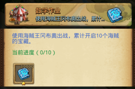 数学作业:使用海贼王冈布奥出战,累计开启10个海贼的宝藏。