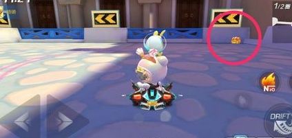 实际上本图中的宝箱位置确实很刁钻而且隐蔽,在快到终点(看到大喷泉之前)的路段会有一个需要开氮气才能够冲上的跳台,多数玩家即便跳上去也只会继续前进,而宝箱却恰恰分布在这个跳台的右后方角落中。