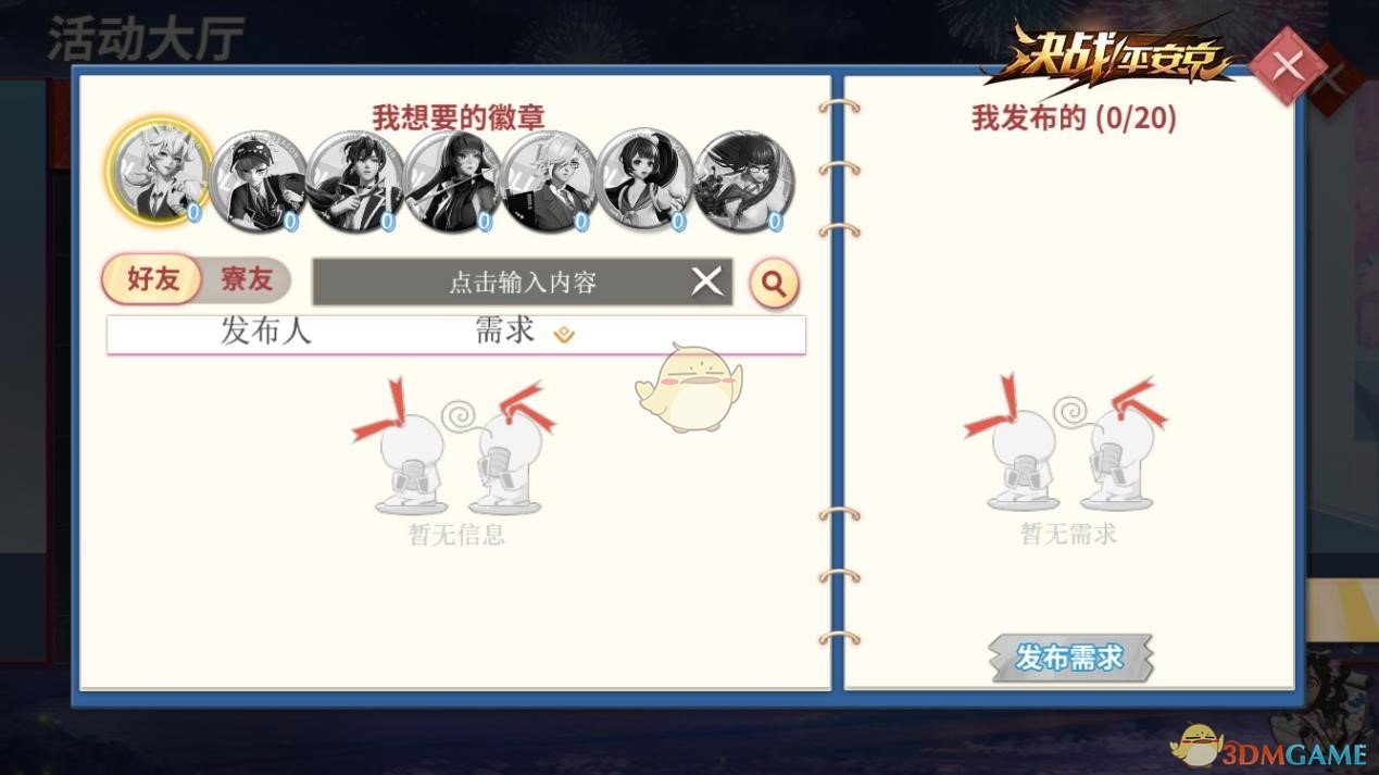 大人们可以在兑换界面当中查看自己的收集进度,除了自己收集之外,还可以通过与好友交换徽章的方式,从而快速集齐所有不同形象的徽章。