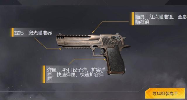 除了子弹以外,为大家介绍一下沙漠之鹰的配件。沙漠之鹰可以使用全息、红点、激光瞄准镜、快速单价、扩容弹夹、快速扩容弹夹。
