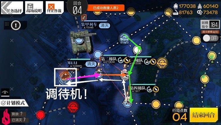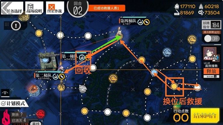 第三回合:rf向下一格换位救援再回到指挥部完成救援 然后ar和狗粮走到图中位置。
