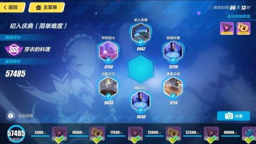 大家使用固定的试用角色(均为SSS)挑战关卡,可携带好友助战。通关拿到全部奖励十分容易,但个别关卡想拿高分要多加练习。较难取得高分的主要是自助料理和炽热焰火两关。