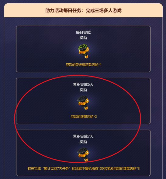 每天三场多人游戏累积获得的漆黑齿轮: