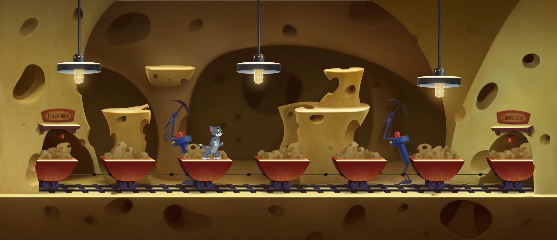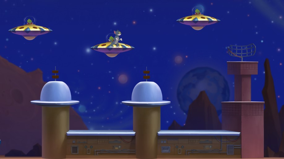 太空堡垒完美还原动画中的太空元素。在这里,玩家将再现动画中机器人挖掘奶酪的场景,也可以见到能帮助汤姆和杰瑞斗智斗勇的高科技设备。