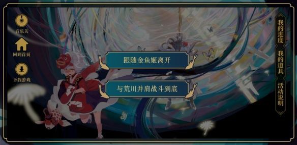 选择另一个选项的话金鱼姬会直接离开,拿不到道具了。