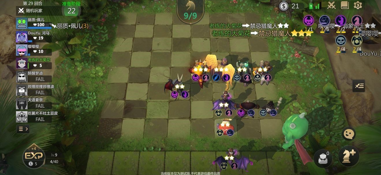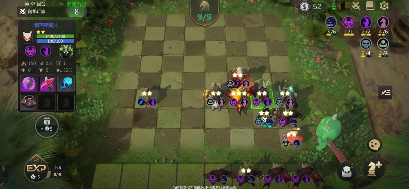 3 在堕落猎魔人已经两星有一定战斗力的情况下,可以在7人口先上阵双恶魔猎手加两骑士加三术士,然后8、9人口再补充后两个骑士。