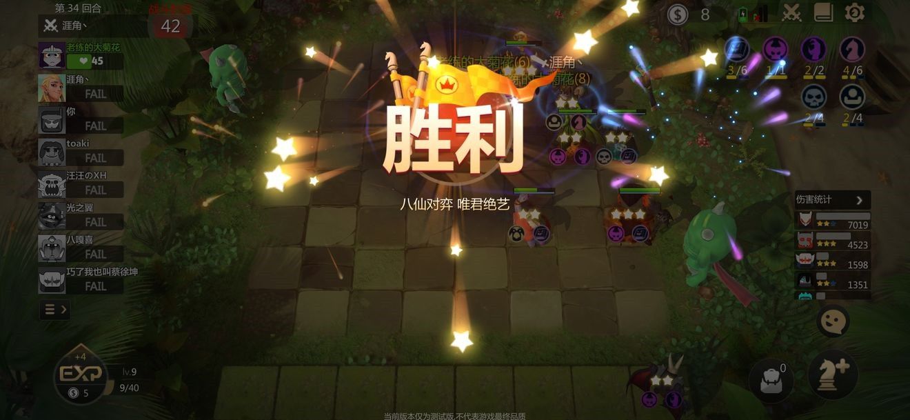 7级开始慢慢把打工卡撤了,上阵4骑3术士。这时候阵容已经比较强了,虽然影魔和炼狱骑士都是恶魔会冲突,但是依旧很强势。