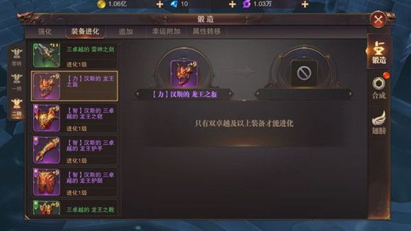 但是对于三转之后玩家拿到的紫装而言,初始往往都没有卓越属性,而想要进化时却又提示需要先达到双卓越。
