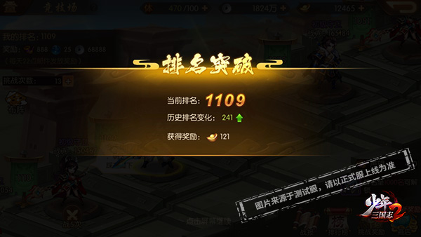 竞技场每天会在固定的时间进行结算,同时每周日也会有一次周结算,玩家们可以获得一定的『声望』,声望可以用来兑换武将碎片,进阶石等奖励。所以玩家们在结算的时候一定要守住位置了!