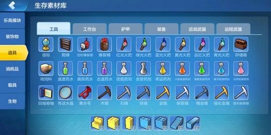 《乐高®无限》中除了基础模块外,还有非常多的“异形”模块。小型半块、斜面、圆柱、角柱、板材零件,各种室内室外的装饰品、植物等,就连“水”、“岩浆”、“空气”,这些特殊模块也是一应俱全!熟悉这些素材的特点,创造者们能够更快上手哦~