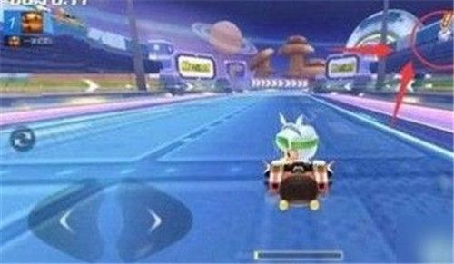 通过黄色加速地带,驶离隧后,注意赛道右边的“观赛席”,这里就是“太空兔”出现的位置。很多宝宝在此处不注意车速,所以往往擦肩而过。